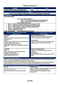 Health & Social Curriculum Map